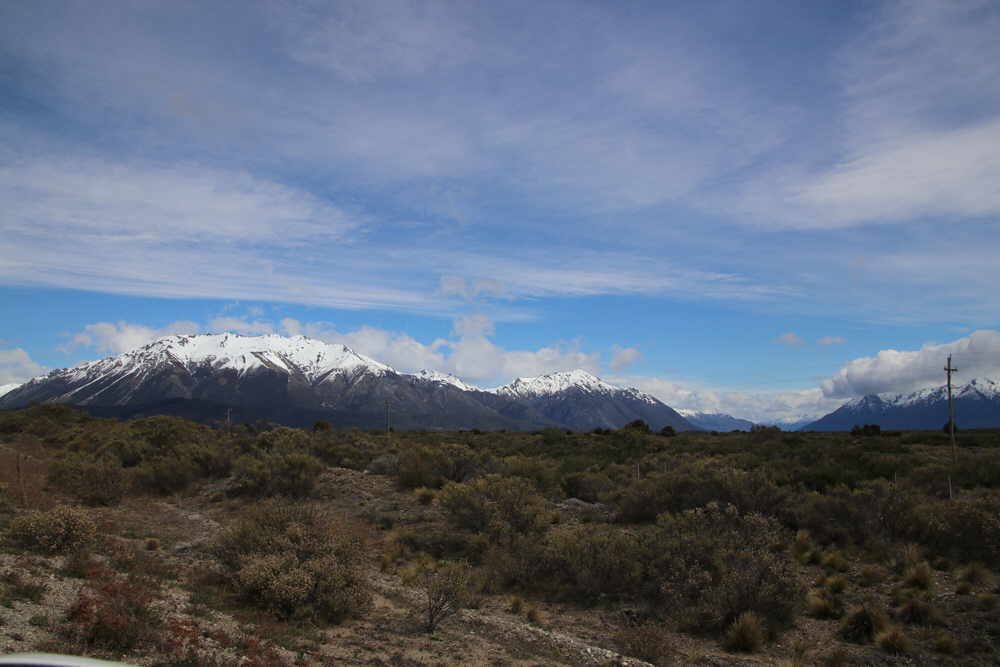 Die Sonne stand schon recht tief, als wir später die schneebedeckten Berge in der Umgebung von Esquel erblickten.