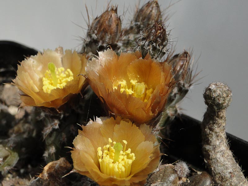 Diese Pflanze hielt ich damals anhand dieser Unterscheidung für einen P. australis. Leider falsch, weil es ohne Zweifel ein wunderschöner P. fischeri ist. Meist fällt es leichter P.australis und P. fischeri anhand anderer Kriterien zu unterscheiden. Beispielsweise das Fehlen oder das Vorhandensein von Glochiden.
