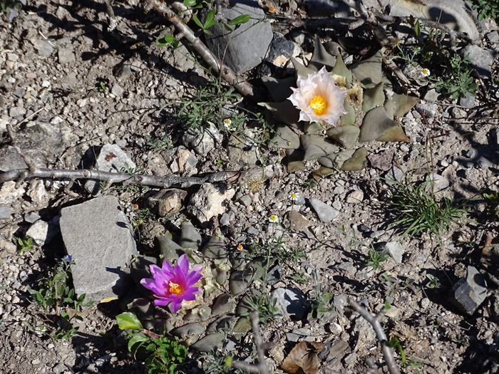 Der Referent zeigt eine abwechslungsreiche Auswahl von blühenden Echinocereen am natürlichen Fundort.