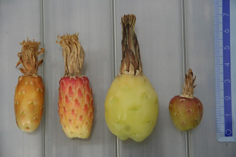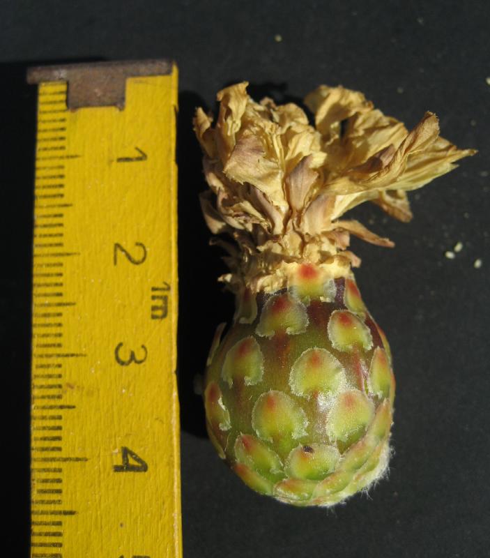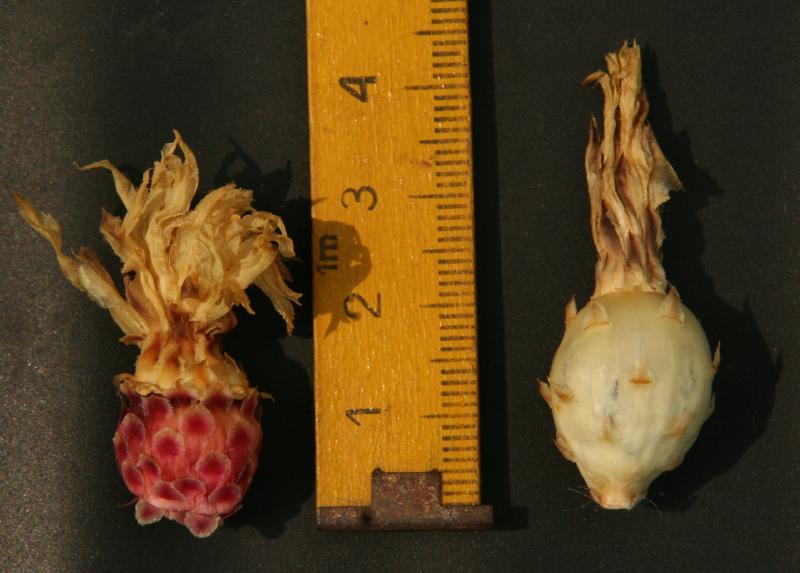 mit Samen- und Blütenschnitt-Aufnahmen sieht es schlecht aus, aber einen kleinen Obst-Abend könnten wir schon einlegen ... . Bisher kann ich mich nur bei Feroc. flavovirens und macrodiscus an rotes Fruchtfleisch erinnern. Die Flavovirens-Frucht weicht auch mit ihren langen wimperartigen Schuppen-Fortsätzen von den sonst üblichen - eher nackten - Fero-Früchten ab.