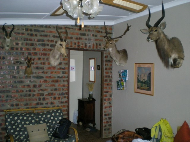 Kammanassie Berg. In Patensie übernachteten wir auf einer Farm, das Zimmer voll mit Jagdtrophäen.