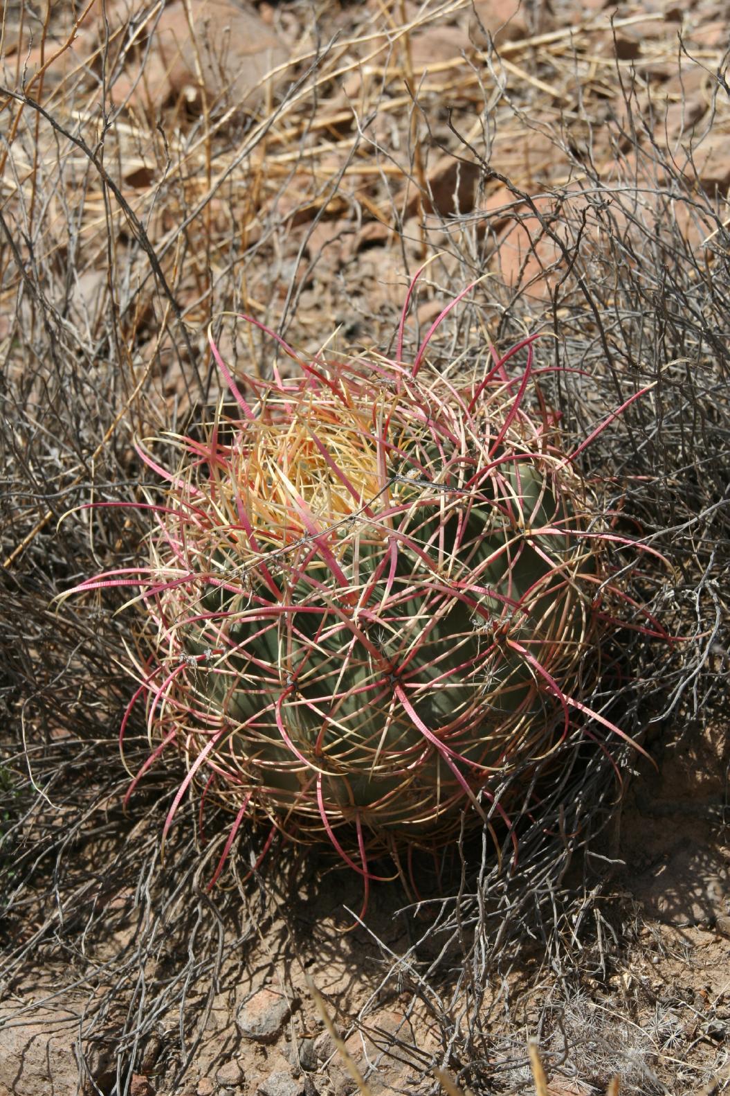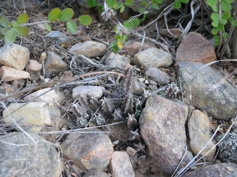 Zunächst ist hier alles recht trocken. Wir finden Mammillaria karwinskiana confusa, Euphorbia radians und Ferocactus macrodiscus.