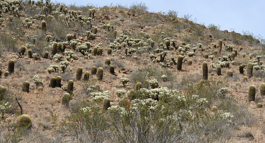 Neben den Feros (oder ist es eher umgekehrt?) gibt es "Teddybär-Opuntien" (Opuntia bigelovii) und vereinzelt Echinocereus engelmannii.