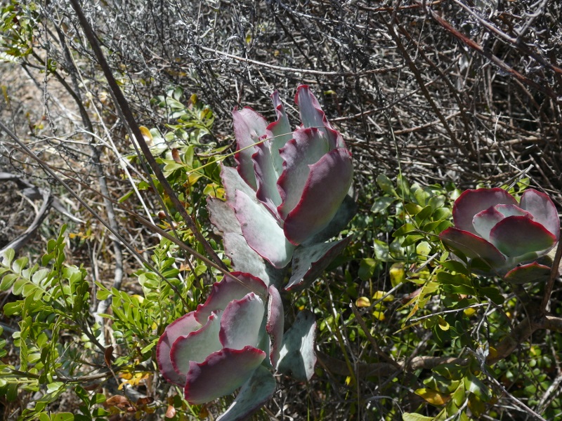 ca. 15 cm hoch, dunkelviolette Epidermis, mit Dornenkämmen.