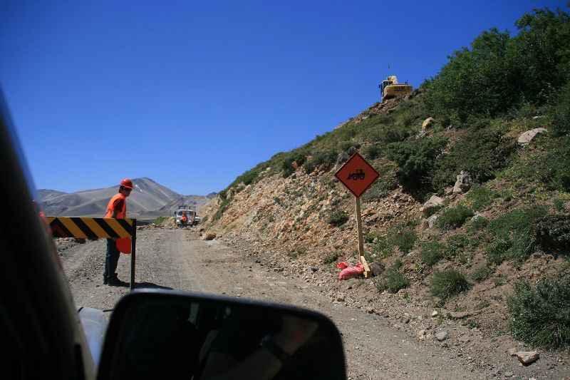 Gestern war es mal wieder ein anstrengendes Erlebniss. Bei der Ausreise in Argentinien stimmte wohl etwas nicht mit den Papieren des Mietwagens. Mit der typischen Geschwindigkeit eines Offiziellen, "hämmerte" der Zöllner seine Anfragen immer wieder in den Rechner. Fragen, ob wir zur Hilfe beitragen könnten blieben unbeantwortet. Als Elisabeth dann nach über einer halben Stunde das Blatt mit den Angaben zum Wagen zusätzlich auf den Tisch legt, kam Bewegung in die Sache und nach einer weiteren Viertelstunde konnten wir Richtung Chile aufbrechen.