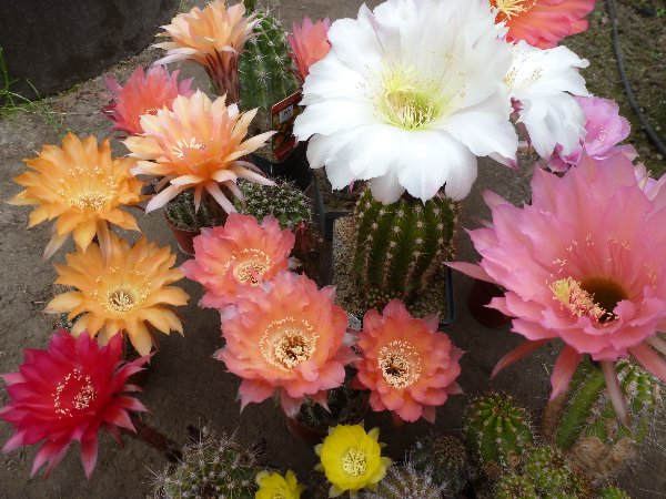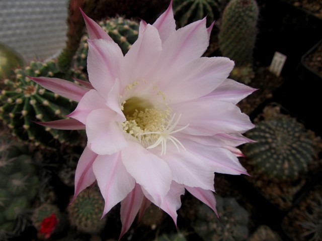 Ein paar Echinopsis haben wieder geblüht bei mir. Diese haben leider keine "richtigen" Sortennamen auf den Schildchen, sondern nur Züchterkürzel oder die Kreuzungspartner.