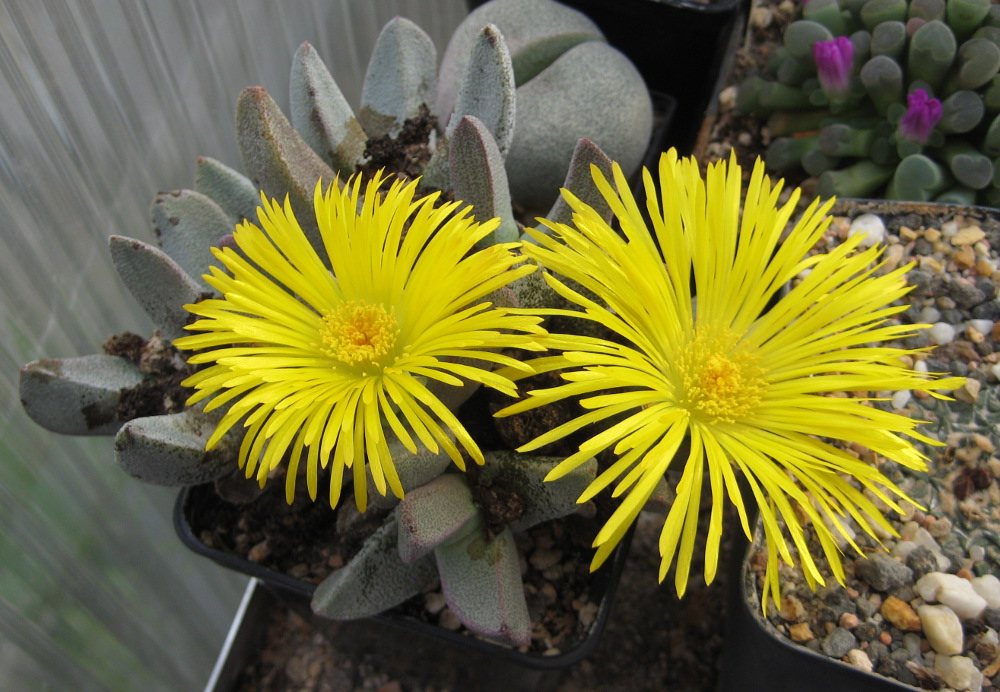 es geht wieder los mit den blühenden lebenden Steinen. Genauer, Pleiospilos compactus ssp. fergusoniae, btw. die Blüten duften sehr angenehm.