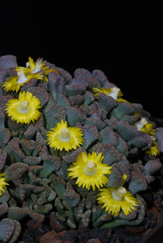 Titanopsis und Aloinopsis zählen seit ein paar Jahren zu meinen Favoriten unter den Mesembs, u.a. weil eine Reihe von ihnen frosthart sind. Dass T.calcarea Winterwachser ist, habe ich in meinen Mesemb-Büchern bisher allerdings immer übersehen und sie dem entsprechend so kultiviert, dass sich das Winterwachstum definitiv in wirklich seeeehr engen Grenzen hält ...