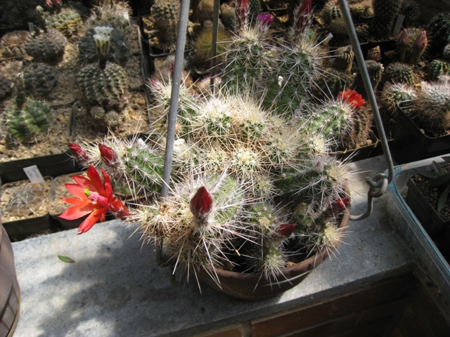 heute bei dem sonnigen Tag ist auch Echinocereus klapperi zur Blüte gekommen.