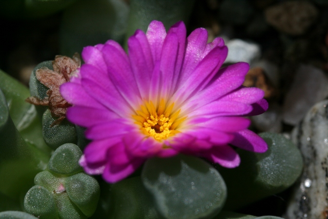 wie jedes Jahr blüht derzeit wieder Frithia pulchra. Diese sehr aparten Blüten erinnern mich immer irgendwie an die Blüten von Mammillaria luethyi.