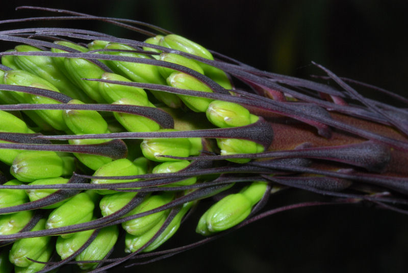 . Das wird wohl kaum gehen. Oder weiß jemand, ob der Blütenstand im Winterhalbjahr das Wachstum einstellt und nächstes Jahr weiter wächst? Gut, der Blütenstand soll nur so an die 2 m lang werden und überhängen, aber dennoch ist das im wintergefüllten Gewächshaus ein Problemchen.