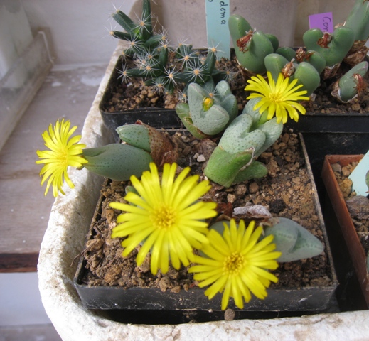 die Conos sind immer noch hoch aktiv und blühen sehr schön. Anbei ein Bild von Conophytum taylorianum subsp. ernianum aus der Namuskloof und Conophytum bilobum subsp. altum von Karrachab Poort.