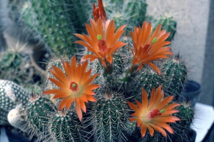 Nach wie vor sind unsere beiden Pflanzen, Ec. scheeri, und Ec. salm-dyckianus einer großen Beliebtheit unter den Echinocereen ausgesetzt, warum? Für die damalige Zeit, wo gibt es schon eine möhrenfarbige Blüte. Heute hat Ec. salm-dyckianus alle Farbnuancen die man sich denken kann, außer weiß.