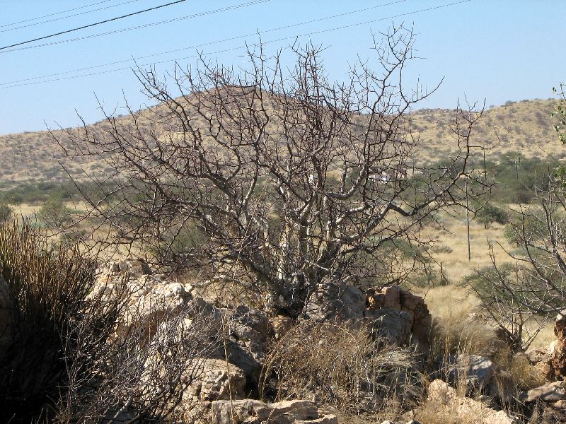 007 Commiphora sp. (Burseraceae) Unser nächster Halt war an einer Stelle, wo früher mal Aloe namibensis direkt neben der Straße wuchs. Leider gehört dieser Standort wohl der Vergangenheit an, denn wir konnten kein einziges Exemplar mehr entdecken.