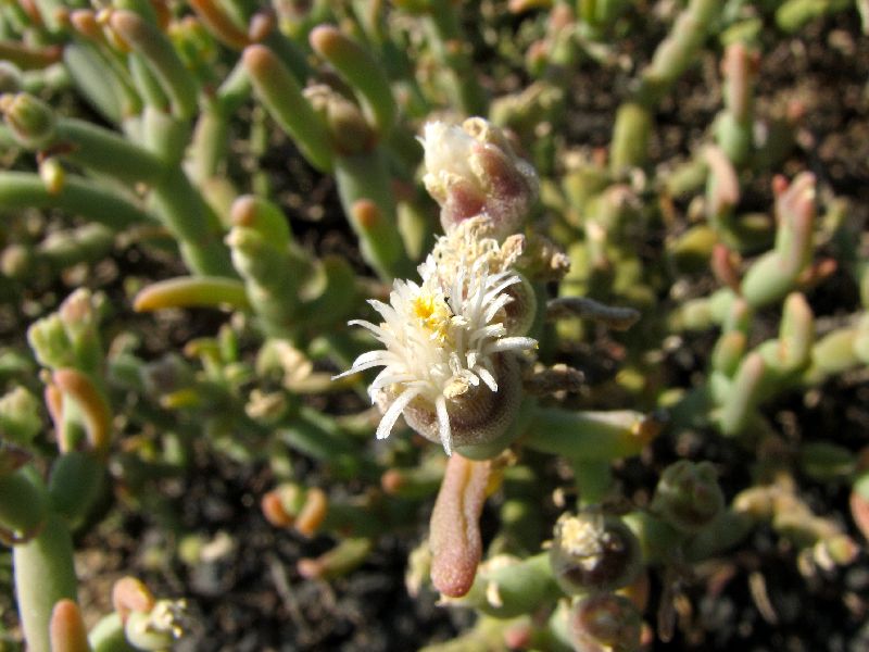 012 Mesembryanthemum sp. (Aizoaceae) 013 Augea capensis (Zygophyllaceae) Kurz einen kleinen Hügel hochgeklettert und schwupps standen wir vor diversen schönen Ascleps. Die meisten Exemplare hatten sich gut zwischen den schwarzen Doleritsteinen versteckt.