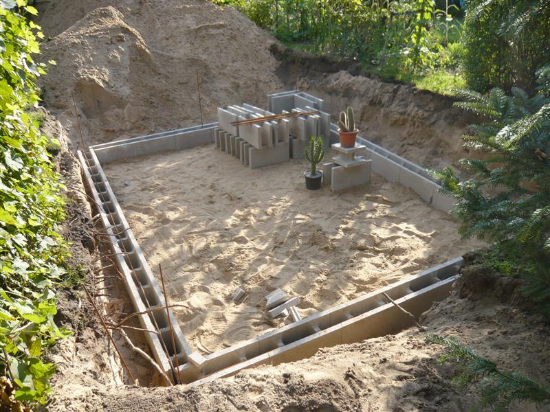 Die erste Reihe der Schalsteine zu verlegen macht die meiste Arbeit, dann läuft es von alleine (fast). Die Isolierung wie vom Hersteller empfohlen (außen 50mm und innen 30mm) hoffe ich hilft im Winter die Heizkosten etwas niedriger zu halten.