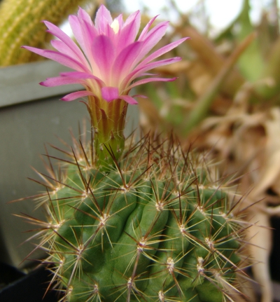 Ja genau Neoporteria castanea/ Eriosyce subgibbosa v. castanea (mit kastanienbraune Dornen und ziemlich dicker Blüte).