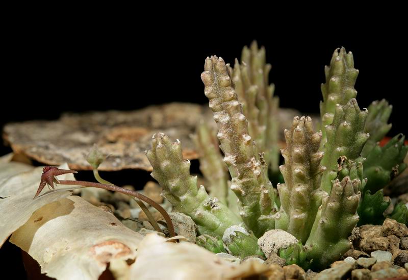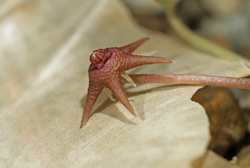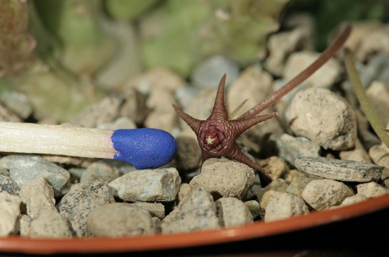 Die Art ist mein kleinster Liebling unter den Stapelien - erst vor wenigen Jahren wieder in Angola gefunden, ist es kaum zu glauben, dass die winzigen Blüten recht eng mit Stapelia gigantea verwandt sein sollen. Uli (= Asclepidarium) hat sich zum fotografieren wieder einmal richtig Zeit gelassen und ich finde das Ergebnis sehenswert.