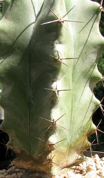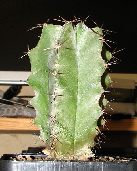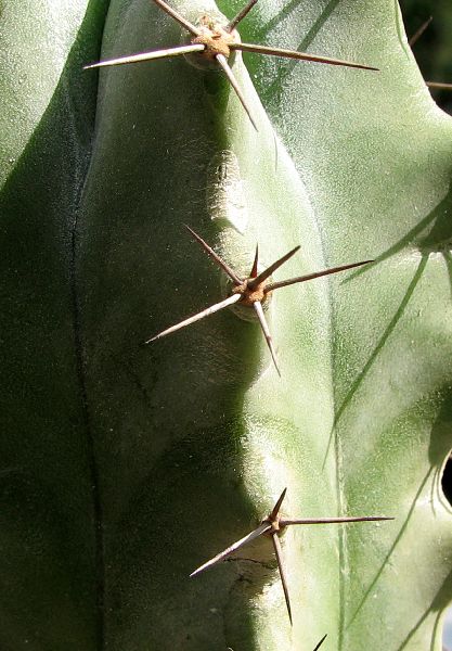 Der Scheitel war noch wesentlich weißer. Da ich nicht wusste, ob es ein natürlicher oder schädlicher Belag war, habe ich ihn mit dem Pinsel grob entfernt. Bei der Bedornung scheint schon so mancher Kandidat abgebrochen zu sein. Bei den folgenden Bilder sah alles noch halbwegs normal aus. Geht das irgendwie Richtung Trichocereus oder ist die Richtung komplett falsch?