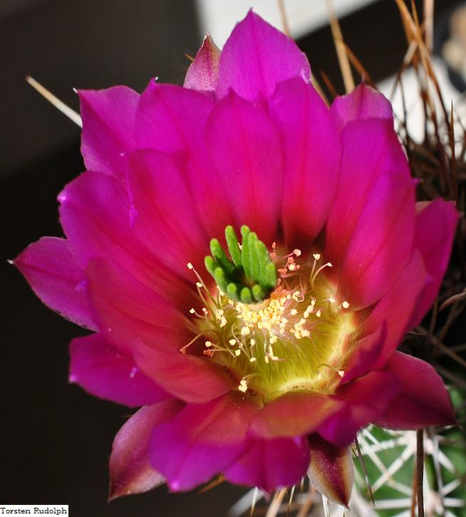 Echinocereen sind immer wieder für tolle Blüten gut. Dieses Rot oder auch Magenta springt einem so richtig in die Augen, ein eyecatcher eben.