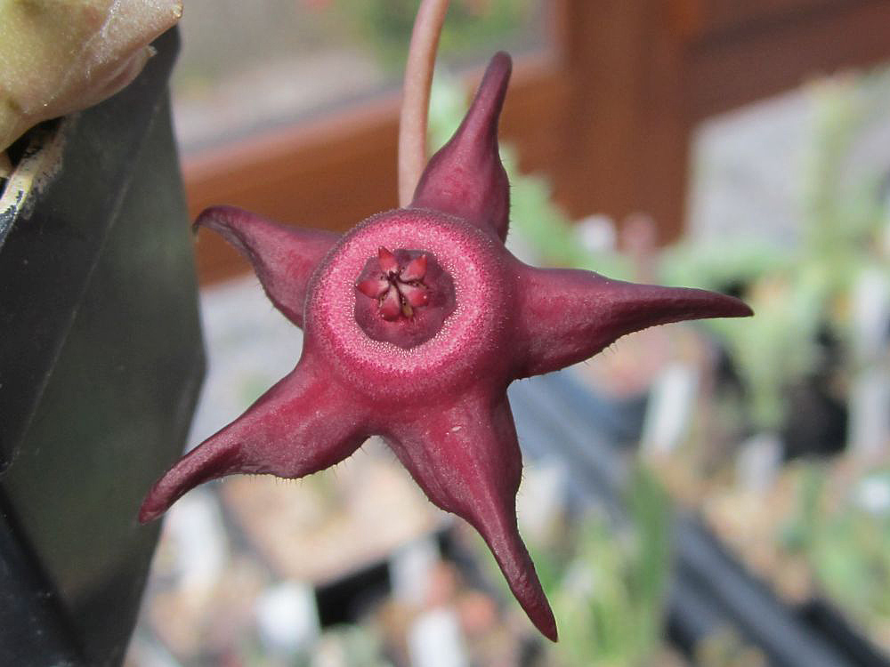 die Pflanze auf dem Bild ist mit Huernia occulta beschriftet im Gewächshaus gelandet.