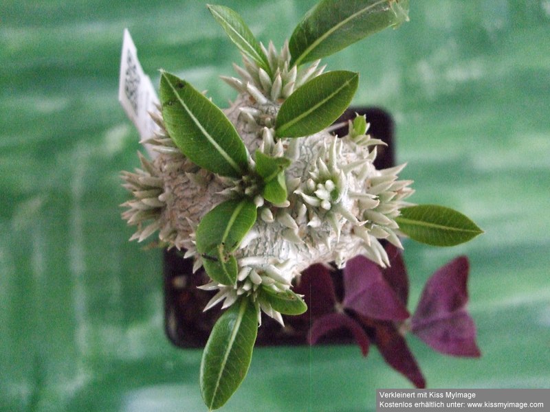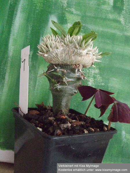Aber vorab ein gepropftes Pachypodium brevicaule aus der Sammlung, gepfopft 2004 auf P. lamerei.