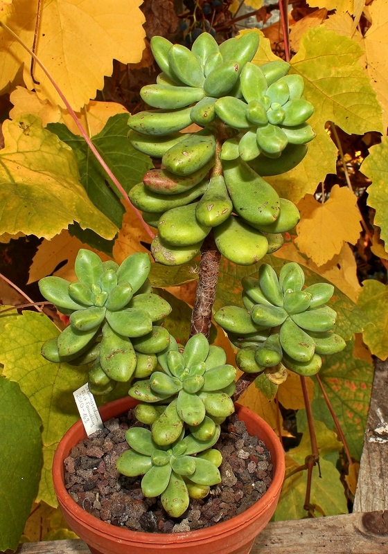 die attraktive Rosette von Graptopetalum suaveolens (Syn. Sedum suaveolens; DNA-Studien haben belegt, daß es mit Graptopetalum bellum nahe verwandt ist) hat einige Züchter dazu verleitet, die Art als Kreuzungspartner auszuwählen. Das Problem, es ist die Samen-Pflanze mit dem höchsten Chromosmensatz: 320. Damit ist es in allen Kreuzungen sehr dominant. Auch Graptopetalum (Tacitus) bellum vererbt ähnlich.