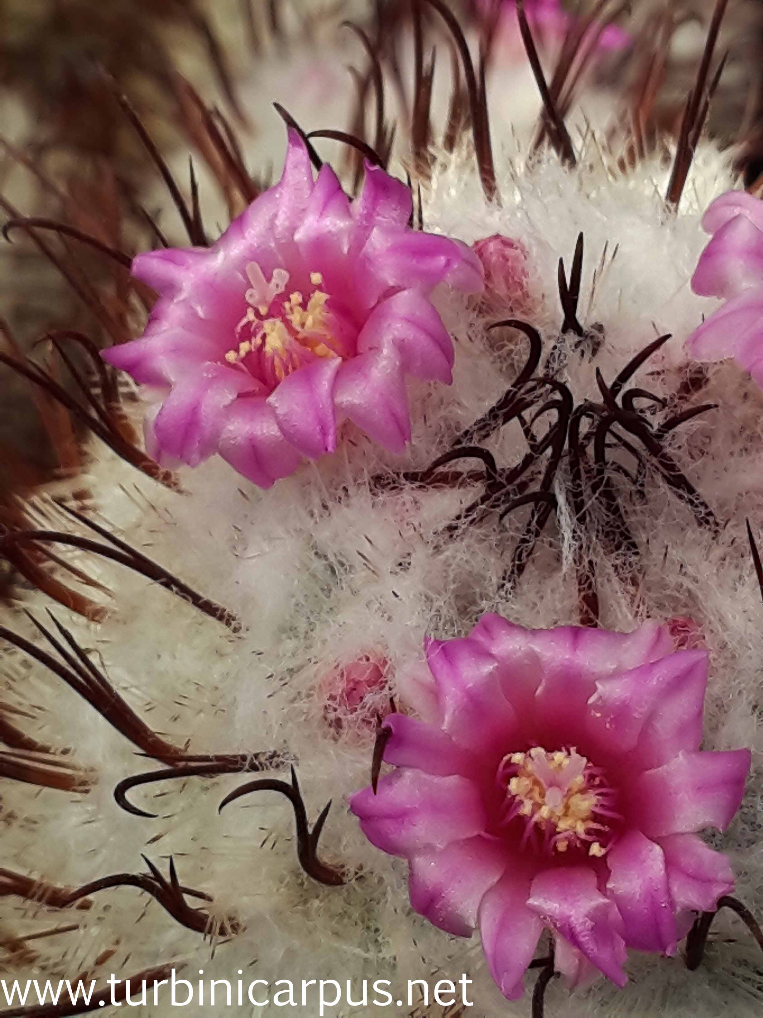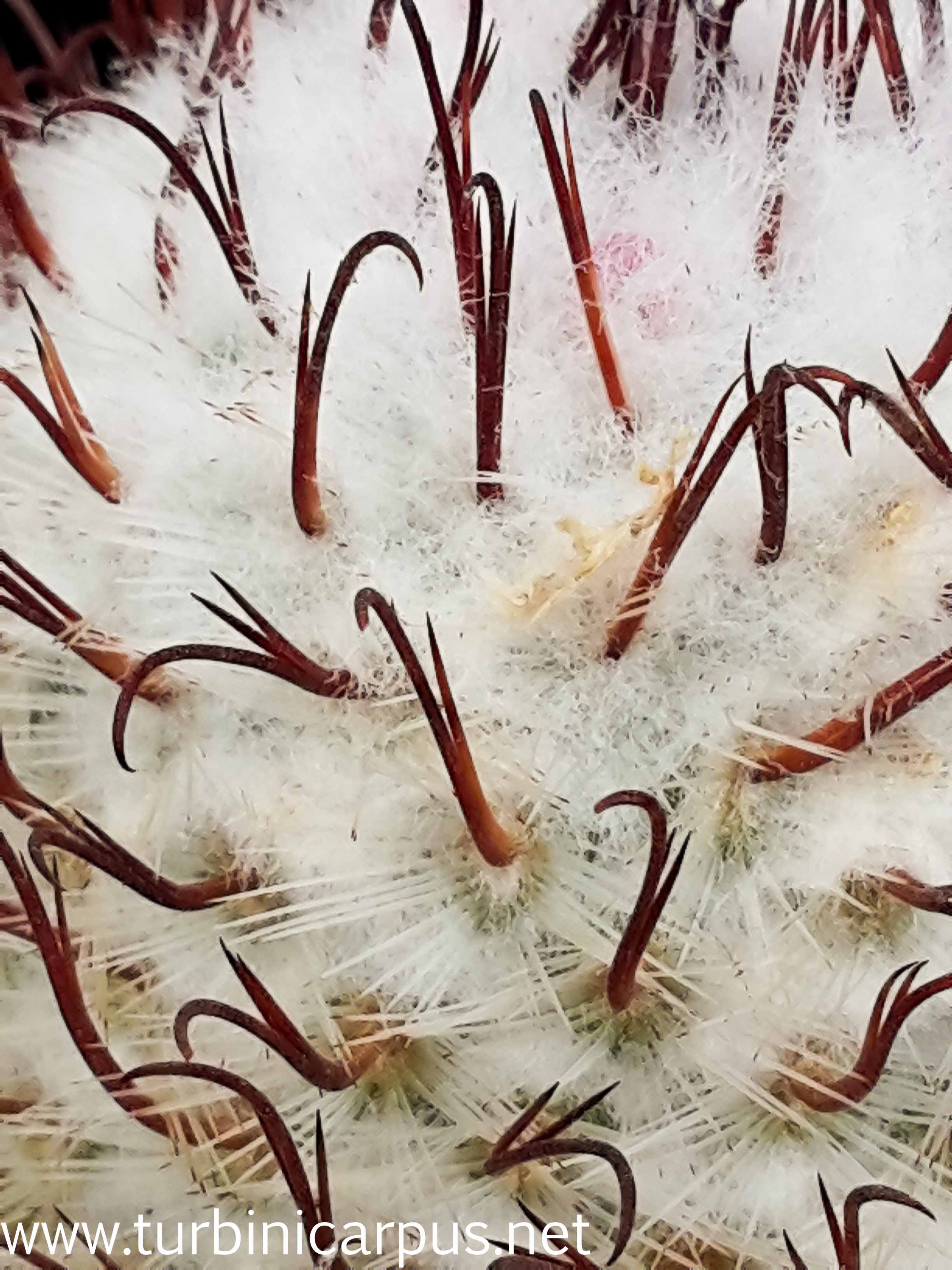 eine sehr schöne aber leider wenig verbreitete Kulturform von Mamm. bombycina. Die Herkunft konnte ich bisher leider nicht klären und weiss nur das meine Pflanzen von einem Klon aus der Sammlung Walter Duwe stammen. Gehört habe ich das es wohl auch Pflanzen mit herkunft de Herdt geben soll. Ich würde mich sehr über Hinweise weitere Pflanzen dieser Form freuen.