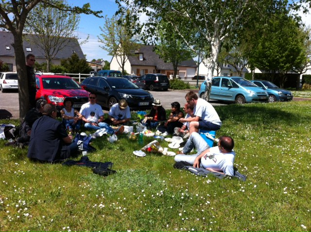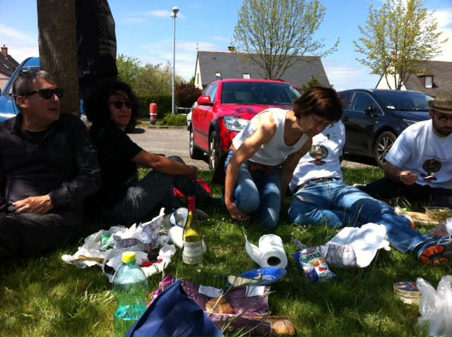 Bei dem wunderbaren Wetter beteiligten wir uns an einem gemütlichen Picknick draußen auf dem Rasen (diesmal Ines von vorn, mit ihrem Mann Marcel, am Baum sitzend: Jeder hatte etwas mitgebracht und es war mehr als reichlich.