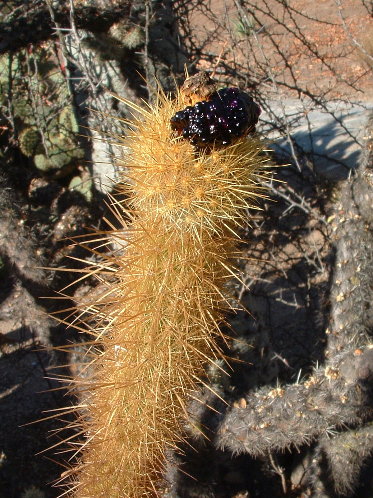 Bergerocactus emoryi ist in Küstennähe vom nördlichen Niederkalifornien bis zum südlichen Kalifornien anzutreffen. Im Neutrieb sieht er schön goldfarben bedornt aus, aber speziell im unteren Bereich sehen die Triebe oft schwärzlich aus.