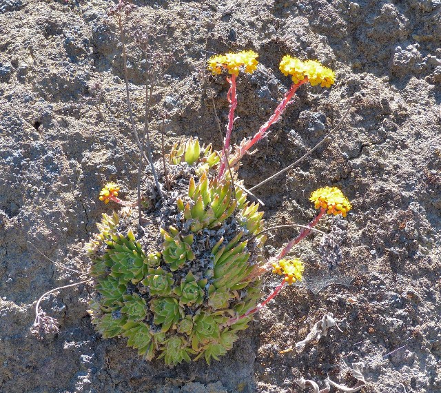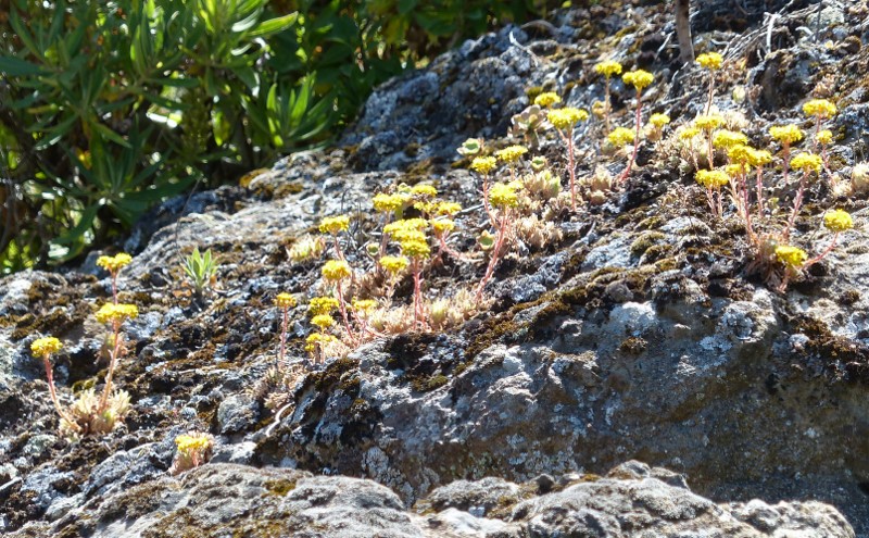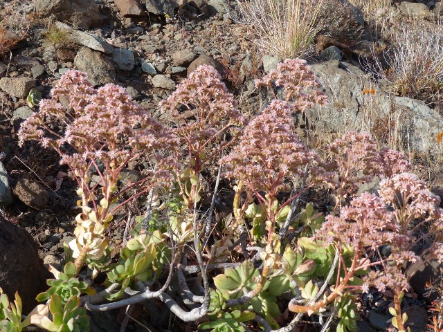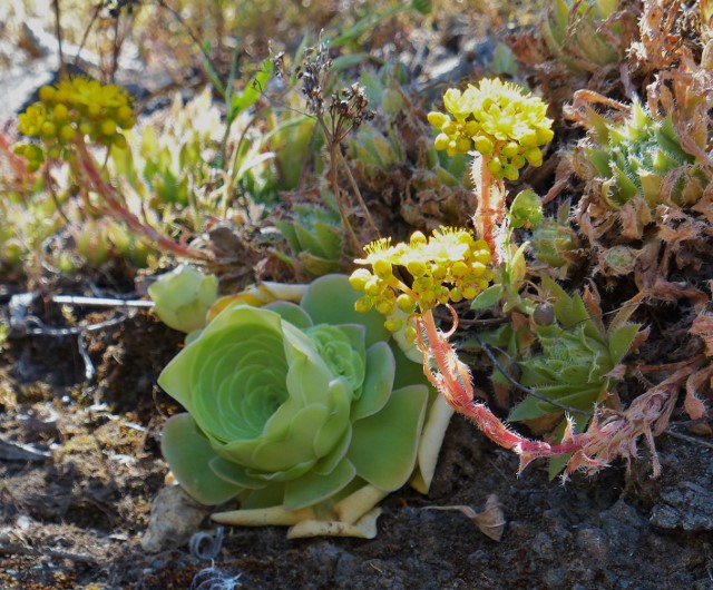 Ab so 200 m bis über 1000 m Höhe findet man auch Aeonium percaneum. Ab 1000m sinken im Winter die Temperaturen bis auf 0°C, es kann sogar