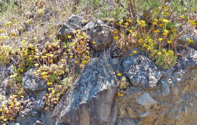 Zu Pfingsten war eine Fahrt in die Berge von Gran Canaria angesagt. In ca. 1000m Höhe blühen jetzt an steilen Abhängen Aeonium simsii.