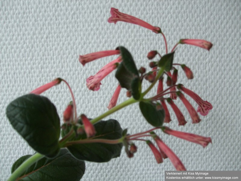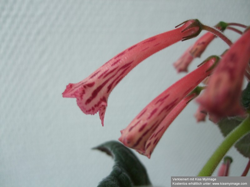 Die Blüte ähnelt der Sinningia piresiana, sie hat aber dunkelrotes Laub.