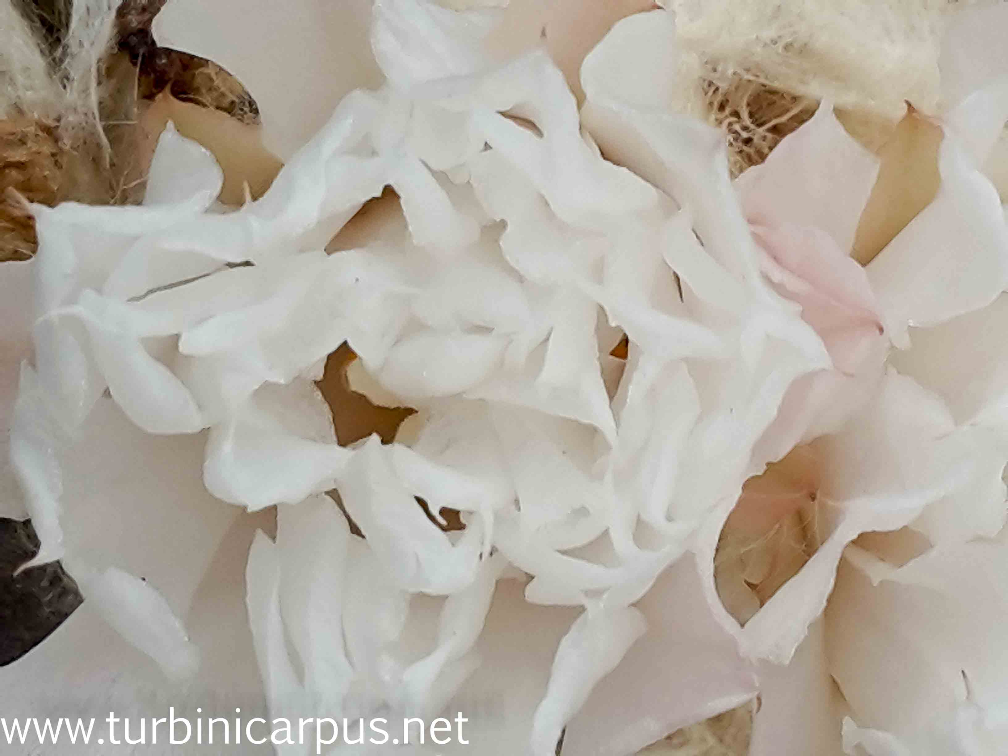 die Pflanzen die ich am Standort beobachten konnte haben sehr kleine Warzen und haben nicht mehr al 5cm-6cm Durchmesser. Sämlinge von dieser Population, in der Sammlung eines Freundes, haben selbst nach 25 Jahren gepfropfter Kultur (Peireskiopsis Sämlingspfropfung/Umpfropfung auf div. Dauerunterlagen) nicht mehr als max. 7cm Durchmesser und auch hier werden die kleinen Warzen bestätigt. Im Ganzen zeigt diese Population eine auffällige, einheitliche und beständige "mini" Population von A. retusus; analog zu A. hintonii/fissuratus.