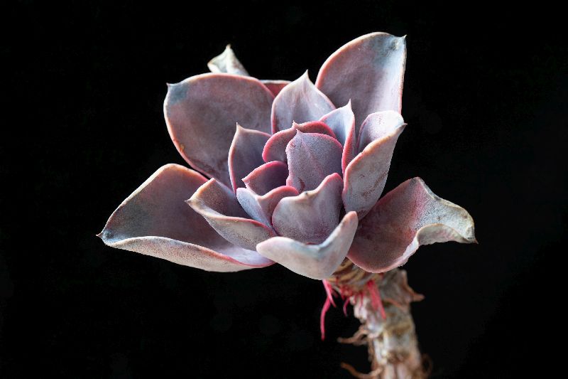 Sie hat daraufhin den Winter regengeschützt auf meinem Balkon verbracht und machte vor einem Monat beim Ausräumen noch einen recht guten Eindruck: Lediglich die unteren Blätter waren eingetrocknet und abgefallen. In den letzten Wochen war ich mehrfach auf Dienstreisen, so dass ich meine Pflanzen erst gestern mal wieder näher inspizieren konnte. Die Echeveria sieht nun nicht mehr wirklich frisch aus, denn der Stamm ist von unten her eingetrocknet und die Blätter zeigen deutliche Nekrosen. Aber immerhin haben sich ein paar frische Wurzelansätze am noch lebenden Stammabschnitt gebildet. Mit Blüten rechne ich in nächster Zeit jedenfalls nicht unbedingt. Aber ich hatte ja eigentlich auch schon damit gerechnet, dass die Pflanze schon im Laufe des Winters Matsche wird ... I'll do my very best ...