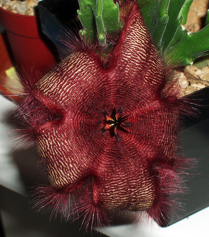 (Sollte es wider Erwarten keine Stapelia hirsuta sein, klopft mir ruhig auf die Finger! Bild)