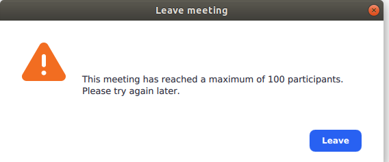 ja, da ist leider etwas schief gelaufen. Tut uns sehr leid. Eigentlich hätten bis zu 500 Personen teilnehmen können (so ist es gebucht, bezahlt und und im Kontrollpanel angezeigt). Offensichtlich konnte sich dann aber ab 100 Teilnehmern niemand mehr zusätzlich einloggen.