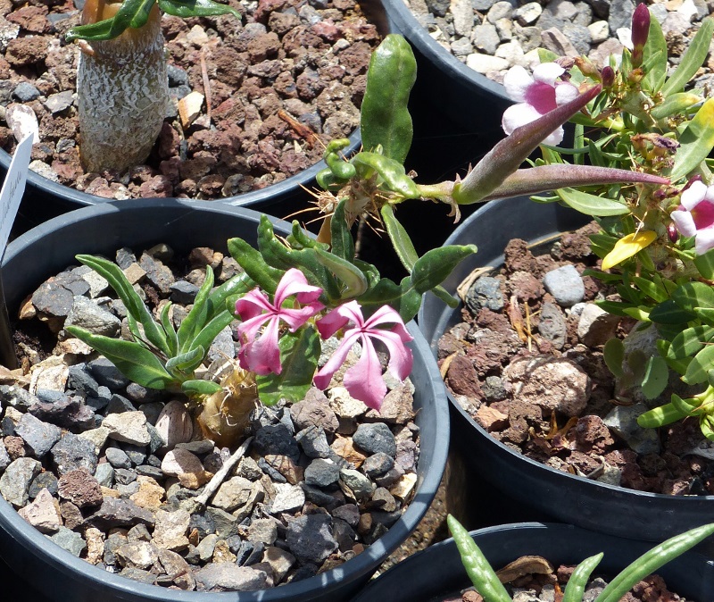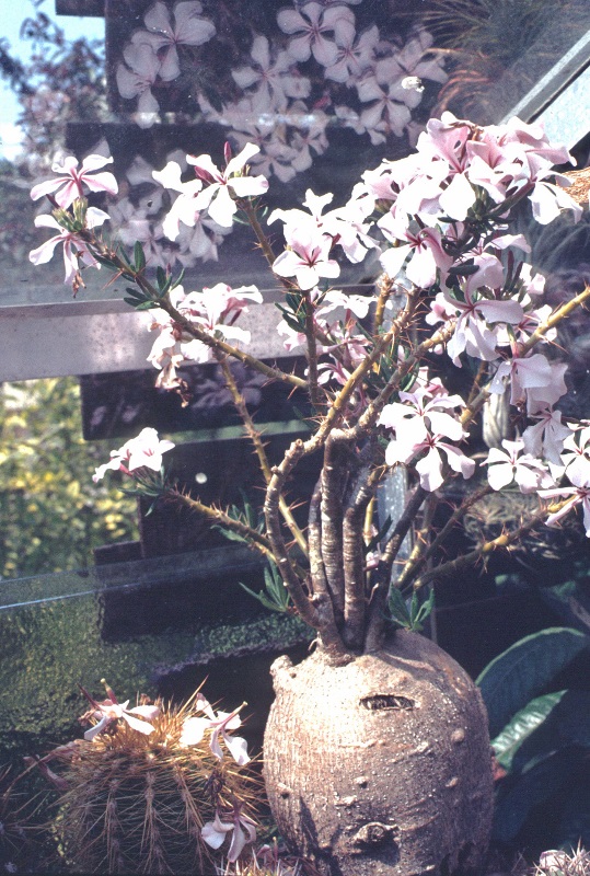 Pachypodium succulentum. Diese Pflanze mit einem fast kindskopfgrossen Caudex blühte dann viele Jahre in meinem Gewächshaus,