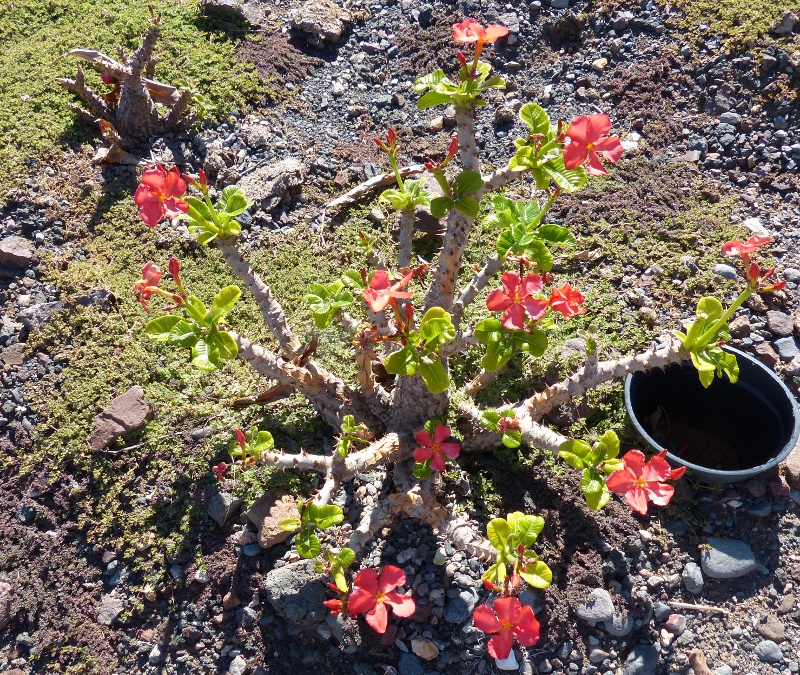 Jetzt im Mai noch ein paar blühende Pachypodien auf dem Feld. Von den Aussaaten 2020 treibt ein Pachypodium windsorii