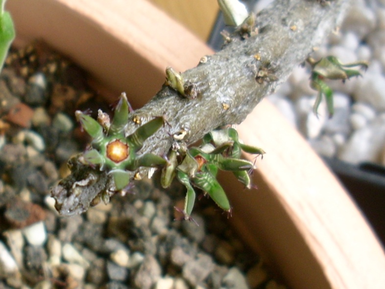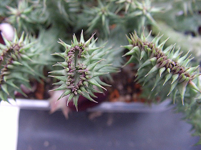zum schluss noch eine kleine zugabe - eine stapelia flavopurpurea mit absolut symmetrischem wuchs ... links und rechts des haupttriebs gleich: