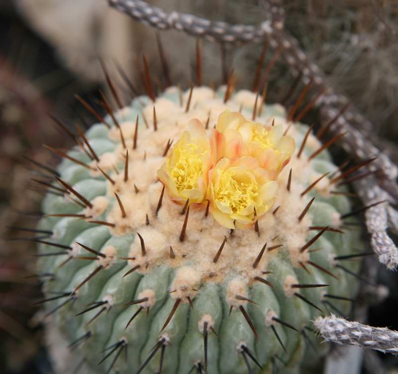 heute war ich doch ziemlich überrascht als im Gewächshaus meine nun doch schon sehr alte Copiapoa cinerea subsp. columna-alba blühen sah. Zwar war die Pflanzen schon seit zwei Wochen aktiv (frische Scheitelwolle), dass sie aber so früh im Jahr schon Blüten zeigt, hatte ich bislang noch nicht.