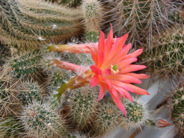 hier hänge ich mal zum Vergleich einige Bilder von E. salm dyckianus an. Die Pflanze ist von Hansi einwandfrei als solche identifiziert worden. Das Bild mit der verblühten Blüte soll für die Blütenlänge herhalten.