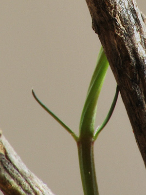 Typisch ist der fünf- bis sechskantige Trieb (2 bis 3 mm im Durchmesser) und die lanzettförmigen Blättchen (1 bis 2,5 cm lang aber nur ca. 2 mm breit).