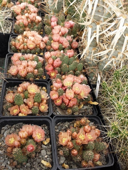 freue mich das die Pflanze so gut schon gesprosst hat u. nun wenigstens sich mit einer Blüte bedankt. Der Klon blüht eigentlich sehr reichlich, bei mir war dieses Jahr bisher auch nur eine Blüte vorhanden. Aber das kann noch werden, sie blühen in mehreren schüben. So langsam fangen meine Opuntioideen an zu blühen, wie auf dem Bild zu sehen ein Pterocactus kuntzei aus Samen gezogen.